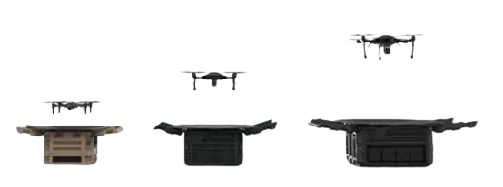Available in three configurations - tethered, free-flight (untethered), and the industry’s first tethered/free-flight hybrid configuration, each of our portable drone-in-a-box solutions can be customized to meet any security, mapping, and inspection needs.